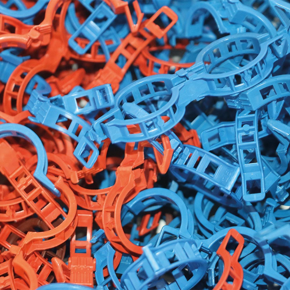 Malzeme ve Tasarım: Genellikle UV katkılı, geri dönüşümlü plastikten üretilir (örneğin 23 mm veya 25 mm çapında). Yuvarlak ve yumuşak tutma yüzeyleri sayesinde bitki gövdesine zarar vermez; hava delikleri mantar oluşumunu önler ve hava sirkülasyonu sağlar.
